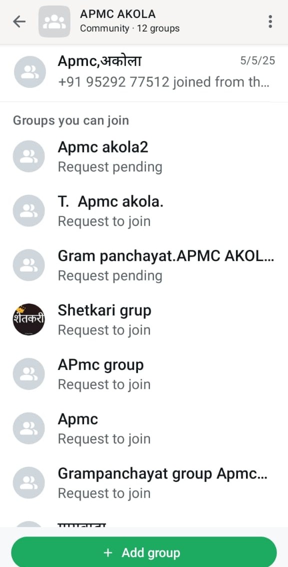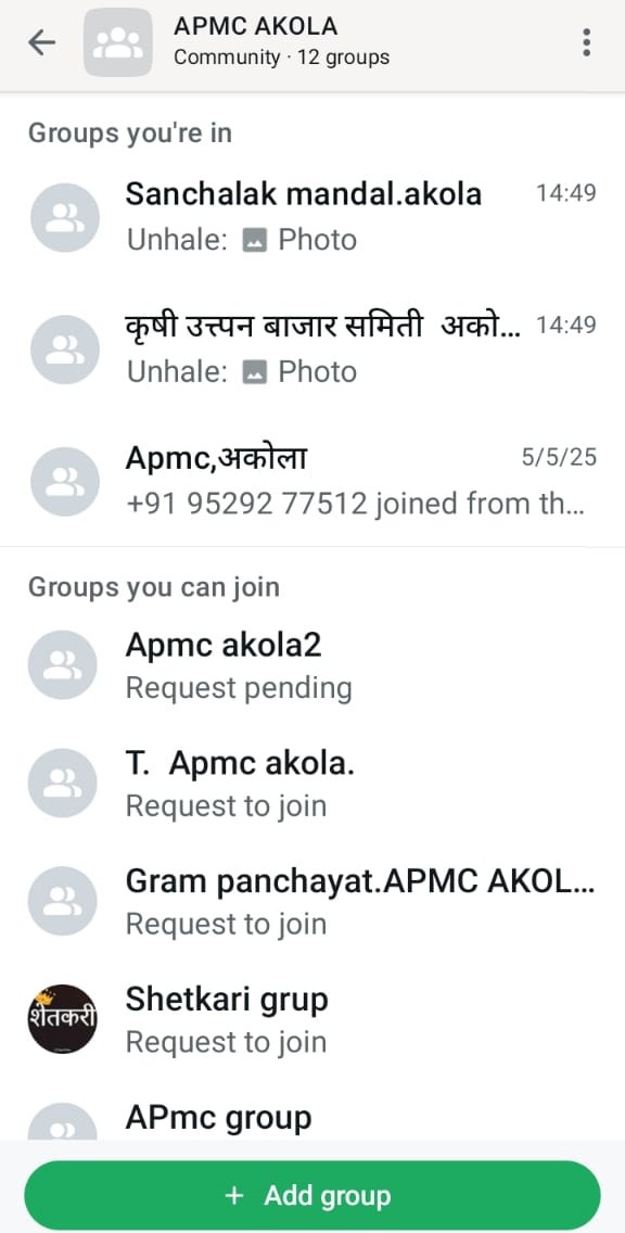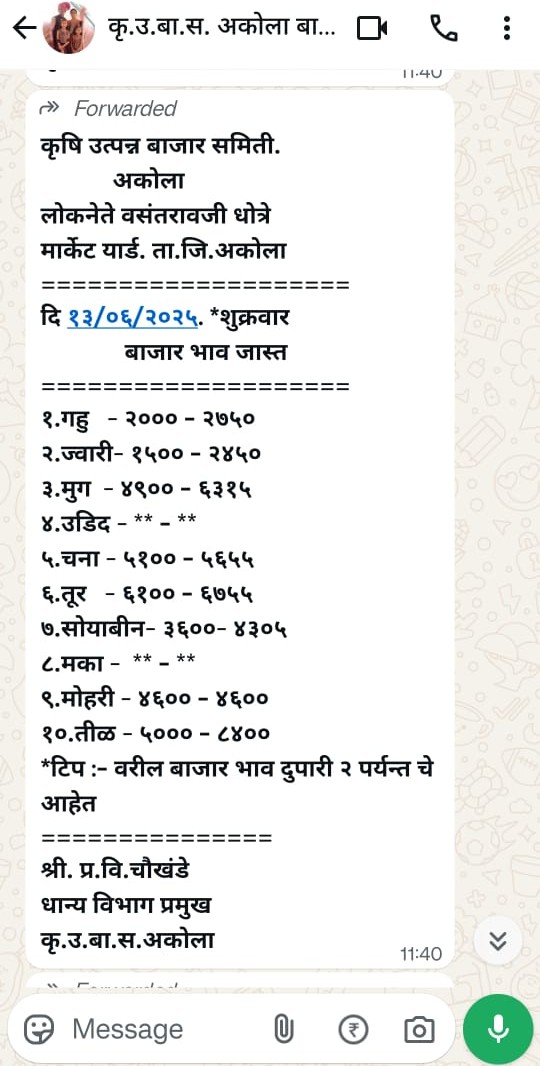 व्हॉट्स अप संदेश तर्फे बाजार भावाची माहिती पुरविण्यात येते.